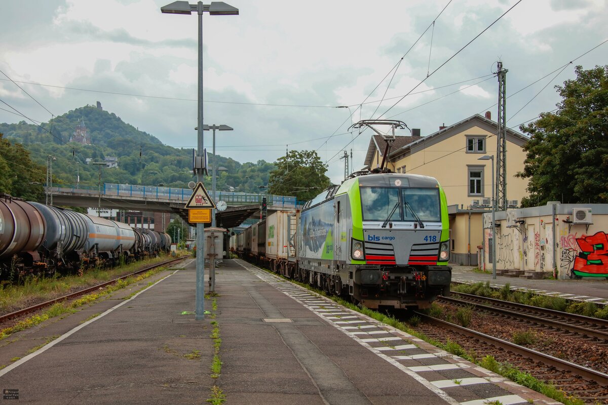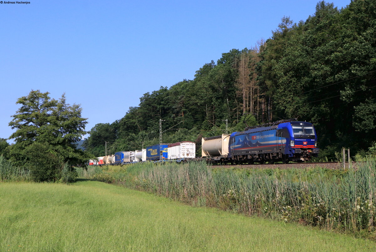 Railpool 186 427 mit einem Containerzug auf der rechten Rheinstrecke bei Oberlahnstein am 28.07.2021 in Richtung Norden unterwegs.