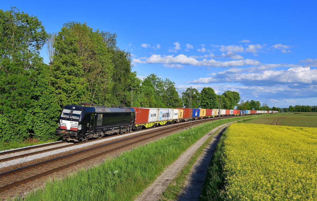 193 866 mit einem Containerzug am 25.05.2021 bei Langenisarhofen.