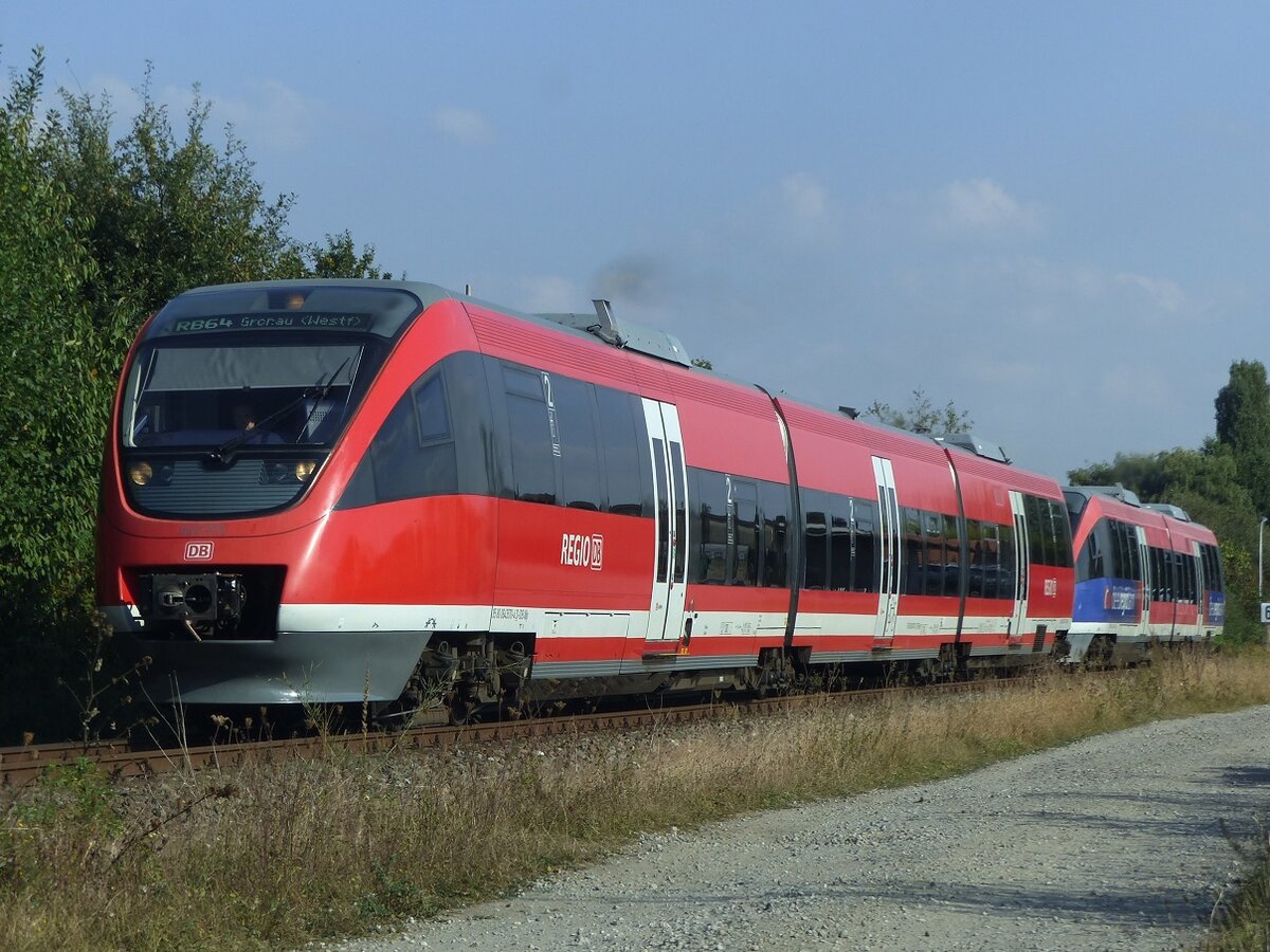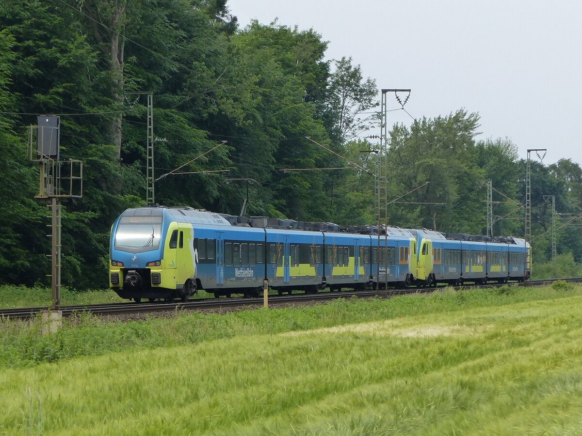 Nachschuß auf den bei der Einfahrt in Neudenau zusehenden RB18 Triebwagen am Dienstag den 27.7.2021. Er ist auf dem Weg nach Möckmühl, wo der Zug endet, da seit dem Tag zwischen Möckmühl und Osterburken an der Strecke Bauarbeiten stattfinden.