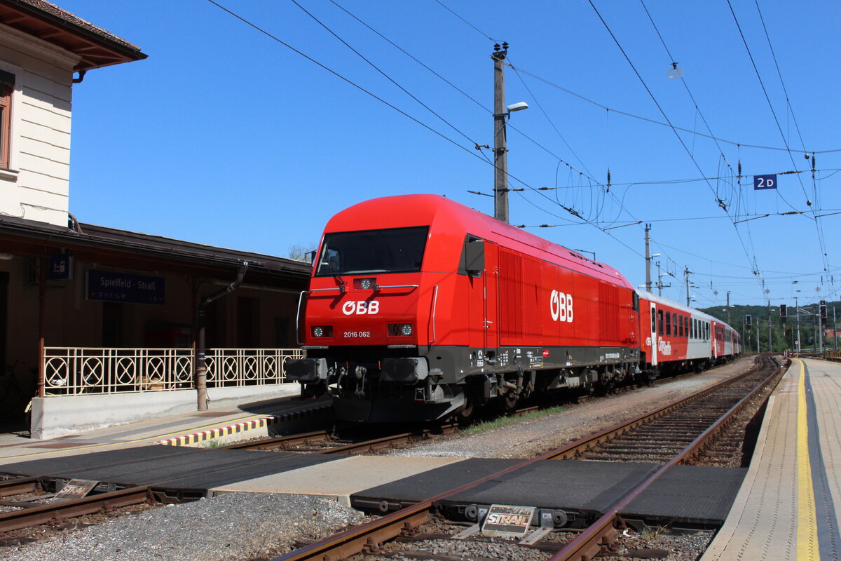 Blitzblank sauber nach einer Frist mit Neulackierung steht am 29.7.2021 die 2016 062 mit dem R6325 nach Bad Radkersburg in Spielfeld-Straß und wartet auf die Abfahrt seinem Ziel entgegen.