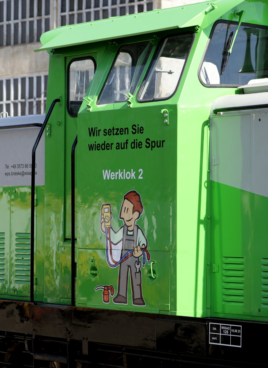 Das Logo auf der Werkslok 2 der WISAG. 30.07.2021 15:12 Uhr.