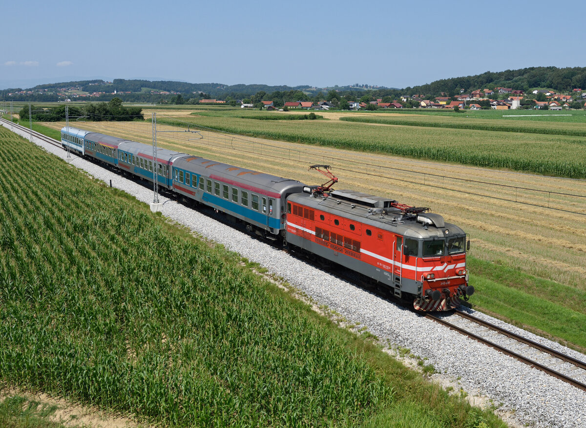 Die von Ansaldo in den 1960er Jahren gebaute SŽ 342 025 bespannte am 24 Juli 2021 den INT 247 "Citadella" und wurde von mir in Podvinci fotografiert.