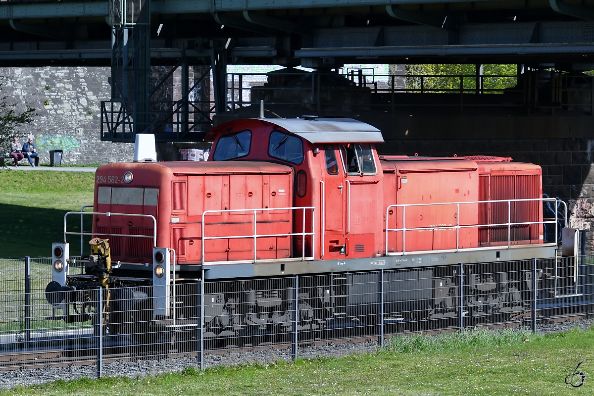 Die Diesellokomotive 294 582-2 war Ende April 2021 in Rheinpark Duisburg-Hochfeld unterwegs.