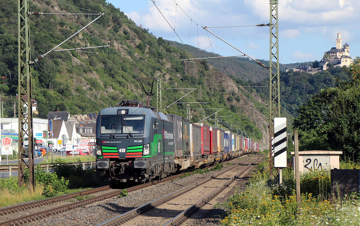 Lineas 186 291 am 28.07.2021 unterwegs im Mittelrheintal bei Oberlahnstein Richtung Norden