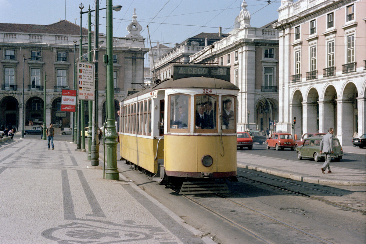 Lisboa / Lissabon CARRIS SL 19 (Tw 324) Praca do Comércio im Oktober 1982. - Scan eines Farbnegativs. Film: Kodak Safety Film 5035. Kamera: Minolta SRT-101.