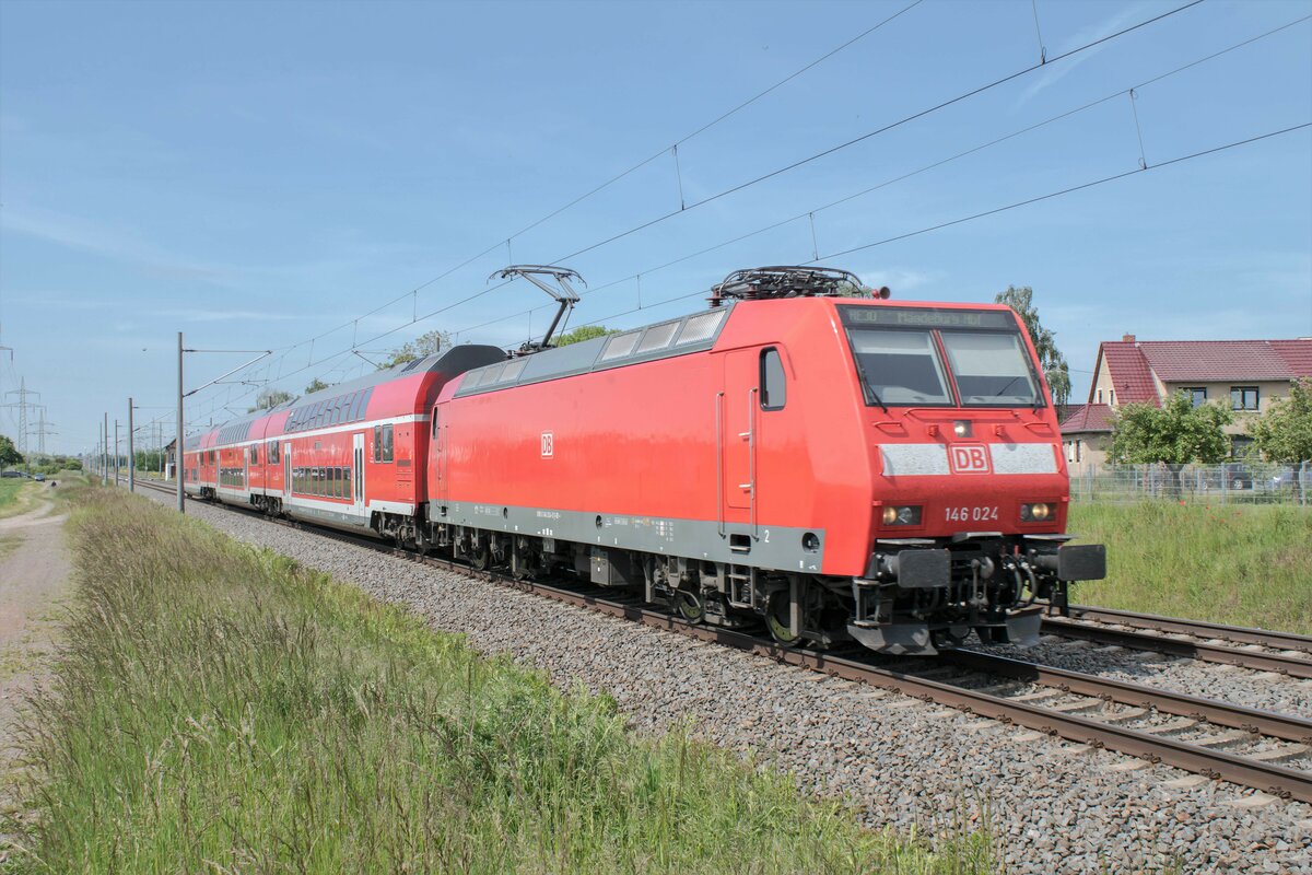 146 024-5 ist am 01.06.2021 als RE 30 in Richtung Magdeburg unterwegs,abgelichtet in Braschwitz.