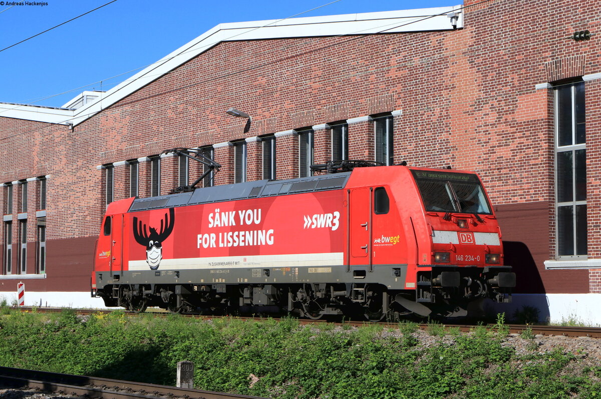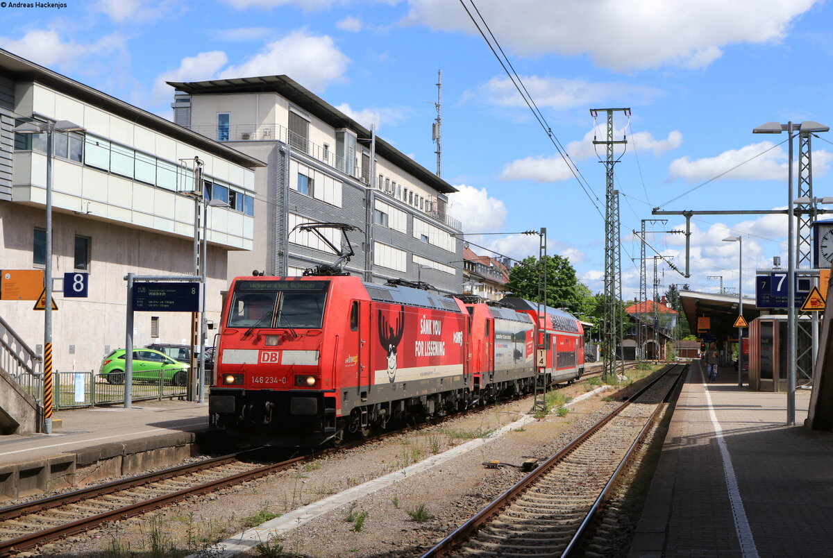 146 234-0 "Lokdown" und 146 230-8 "750 Jahre Radolfzell" (kalt) mit dem Lr 70691 (Offenburg-Freiburg(Brsg)Hbf) in Freiburg Hbf 14.5.21