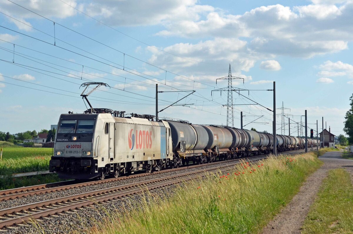 LTE Logistik- und Transport- GmbH, Graz [A] mit der MRCE Vectron "X4 E - 621" [NVR-Nummer: 91 80 6193 621-0 D-DISPO] und Kesselwagenzug am 22.06.21 Durchfahrt Bf. Golm (Potsdam).
