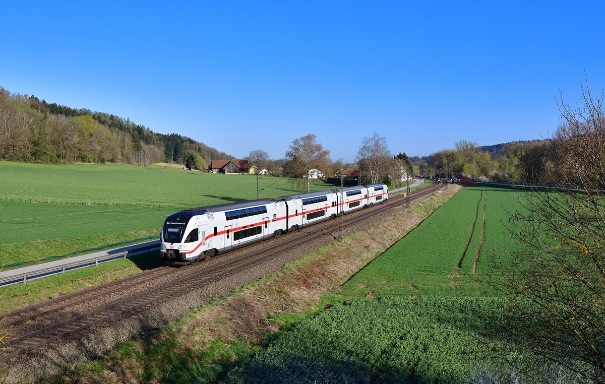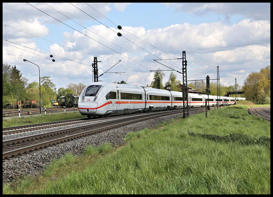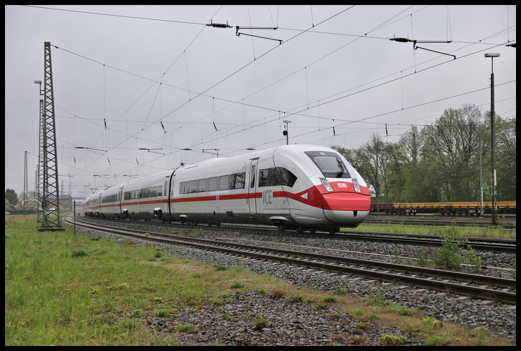Ein ICE 1 erreicht hier am 7.5.2021 um 16.20 Uhr auf der Fahrt in Richtung Osnabrück den Stadtrand von Lengerich in Westfalen.