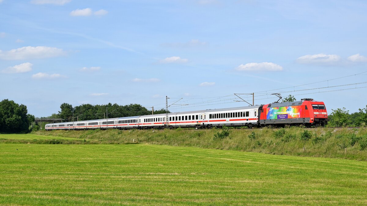 [Reupload] DBpbzfa 668.2 (50 80 86-81 859-0 D-DB) mit Schublok 146 566-5 unterwegs in Braschwitz. 🧰 DB Fernverkehr 🚝 IC 2049 (Linie 55) Köln Hbf–Dresden Hbf 🚩 Bahnstrecke Magdeburg–Leipzig (KBS 340) 🕓 3.5.2021 | 16:47 Uhr