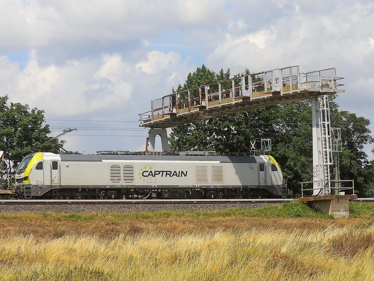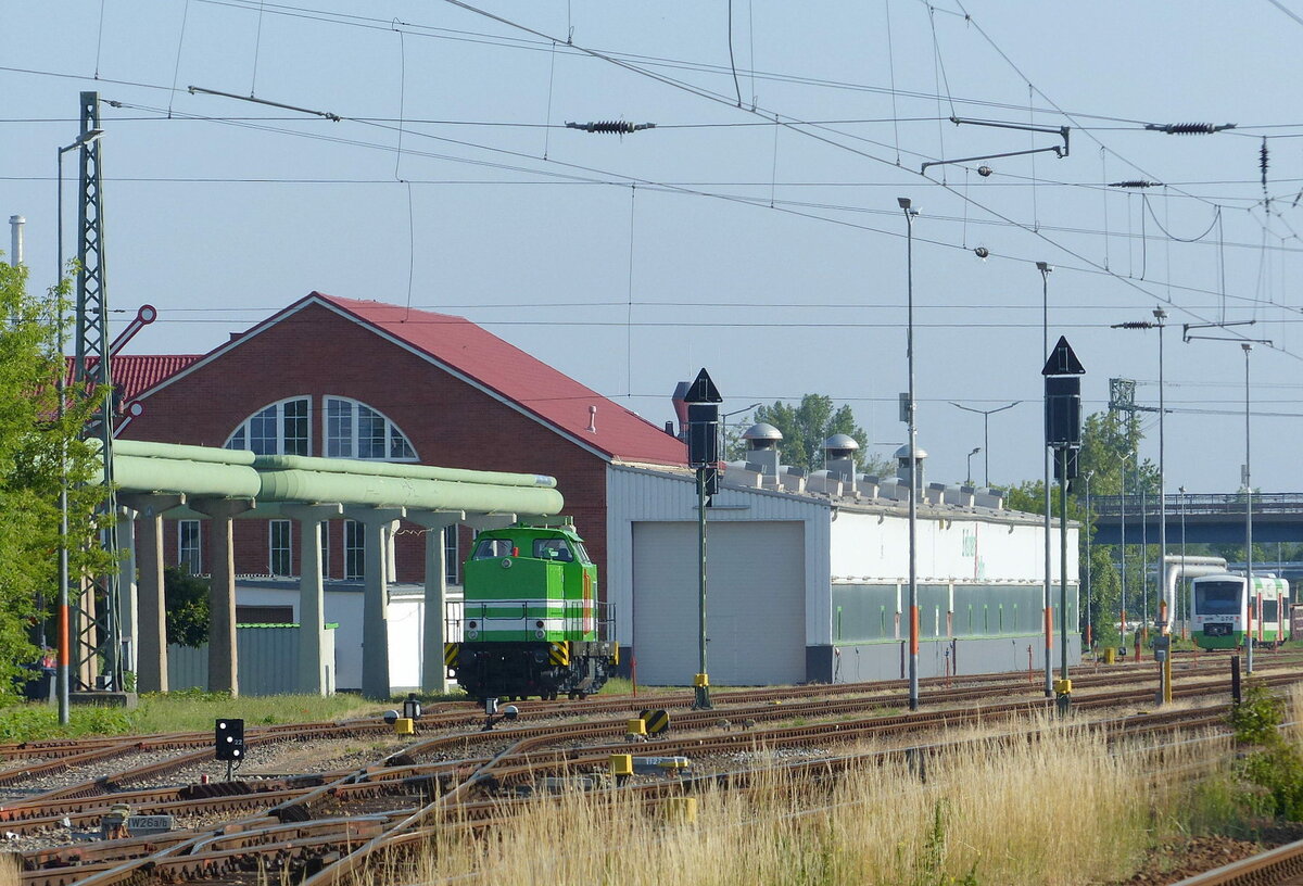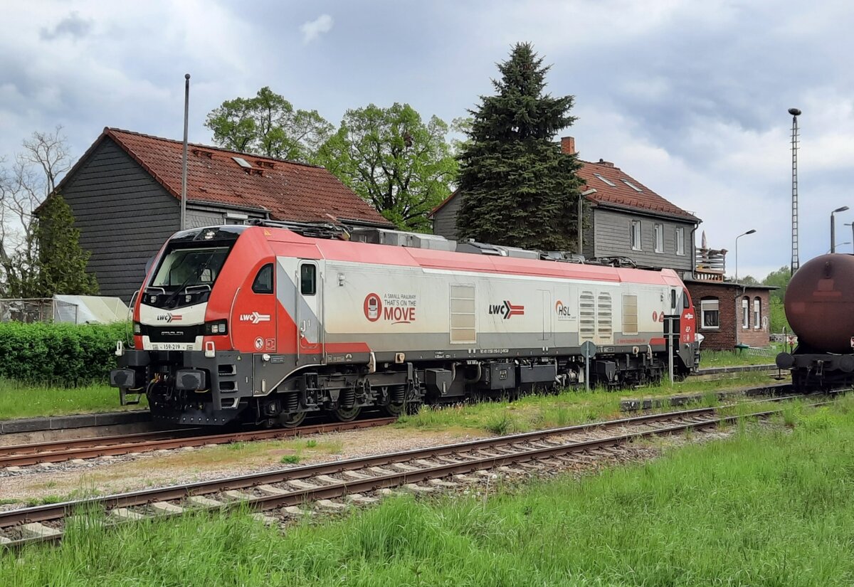 Die für die HSL fahrende LWC 159 219 am 19.05.2021 beim umsetzen an den DGS 69461 nach Großkorbetha, am 19.05.2021 in Emleben.