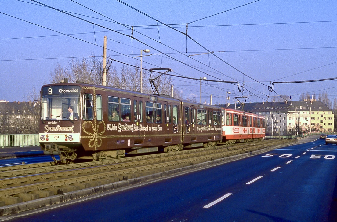 Köln 2114 + 2112, Severinsbrücke, 04.02.1989.