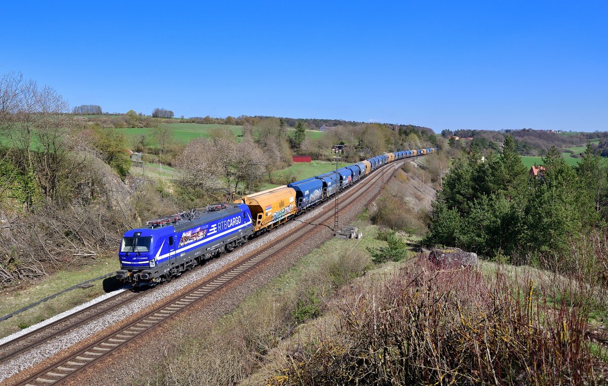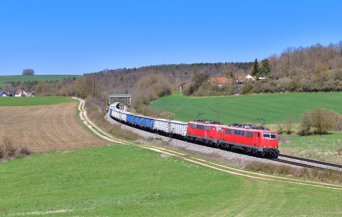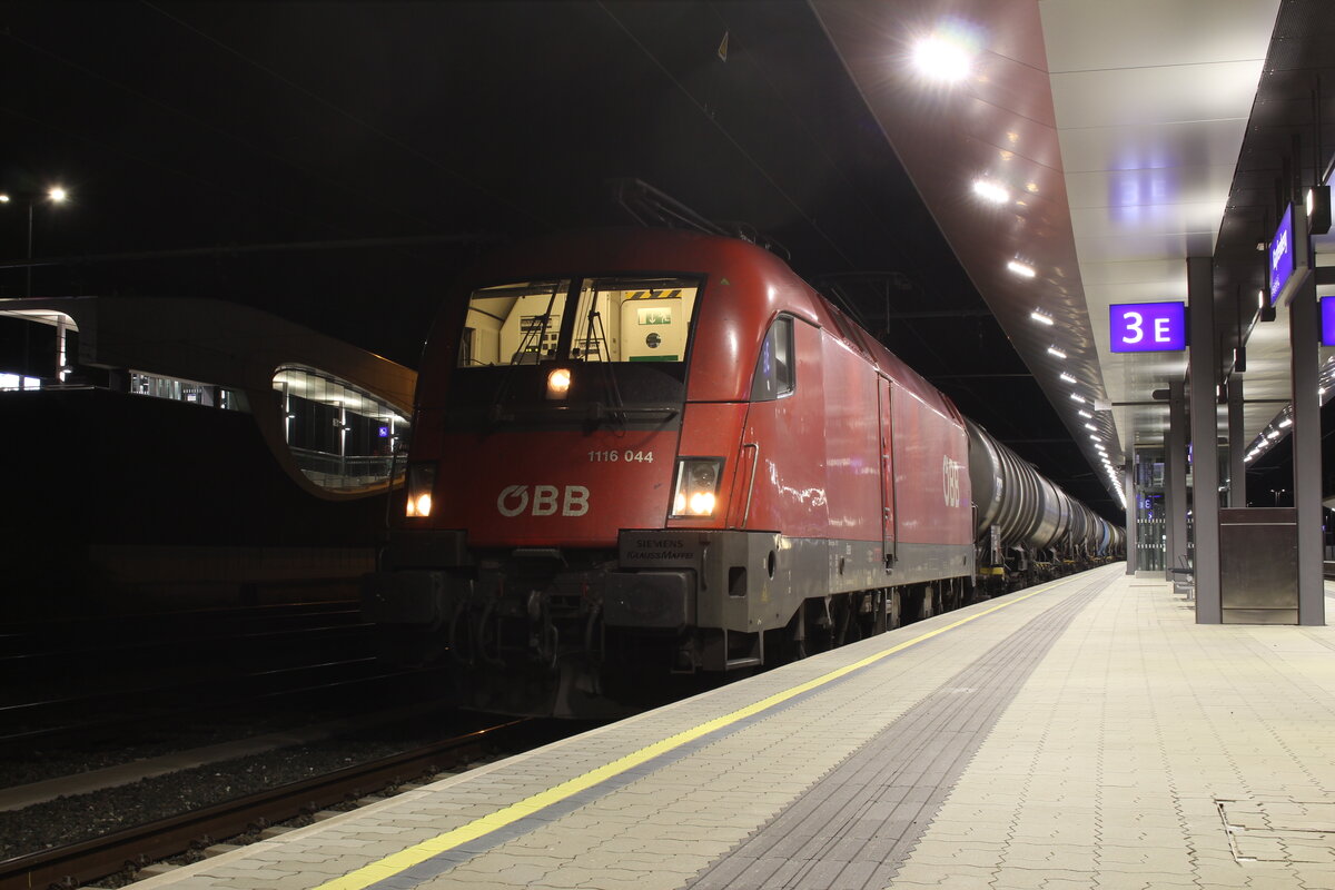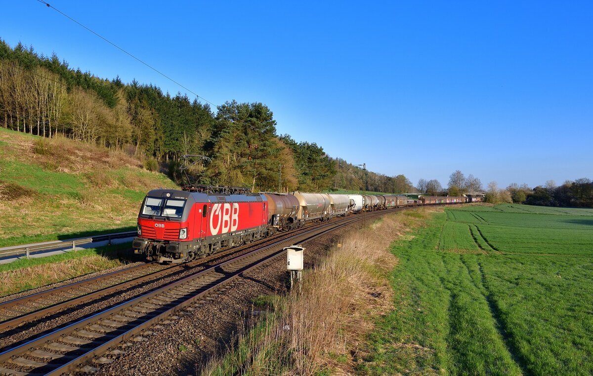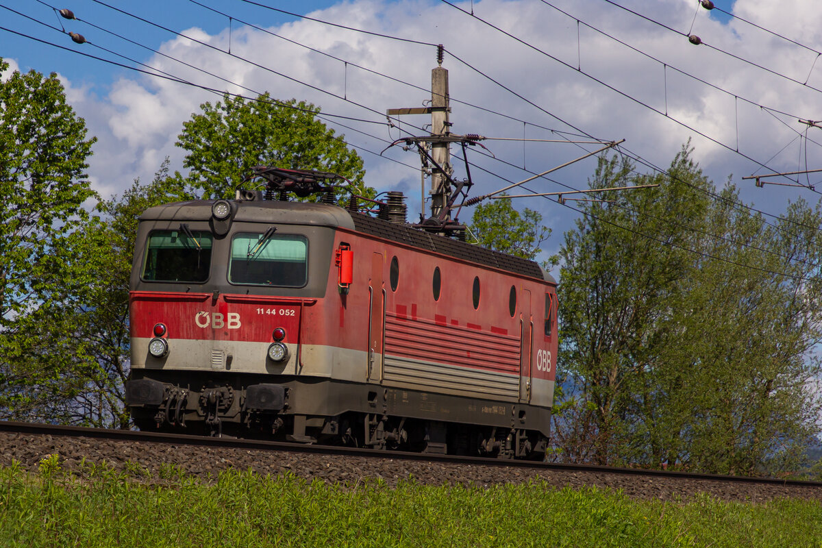 1144 013-0 im Dreierpack an einem Güterzug bei Schwarzach. 21.4.21