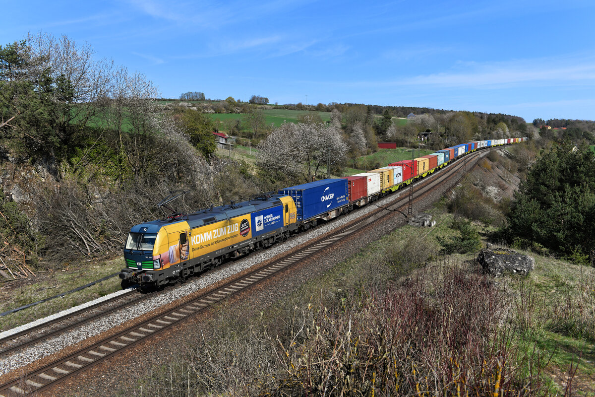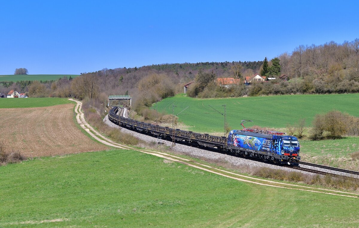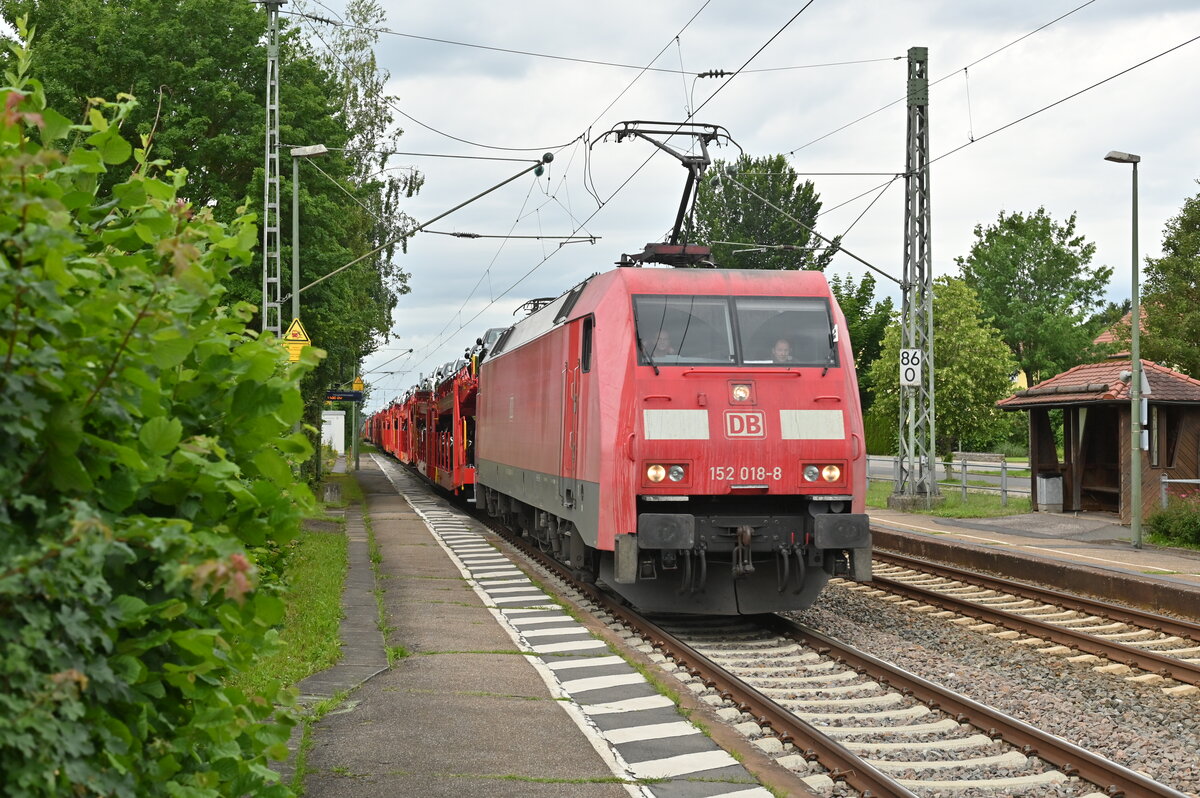 Heute mal statt eines Audizug einen Mercedeszug in Rosenberg Baden gezogen von der 152 018-8 in Richtung Würzburg. 6.6.2021