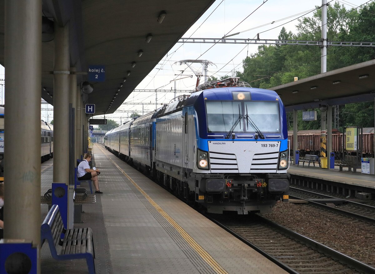 193 769-7 durcheilt ohne Halt mit einem Express Zug  Zábřeh na Moravě, 21.06.2021 10:56 Uhr.