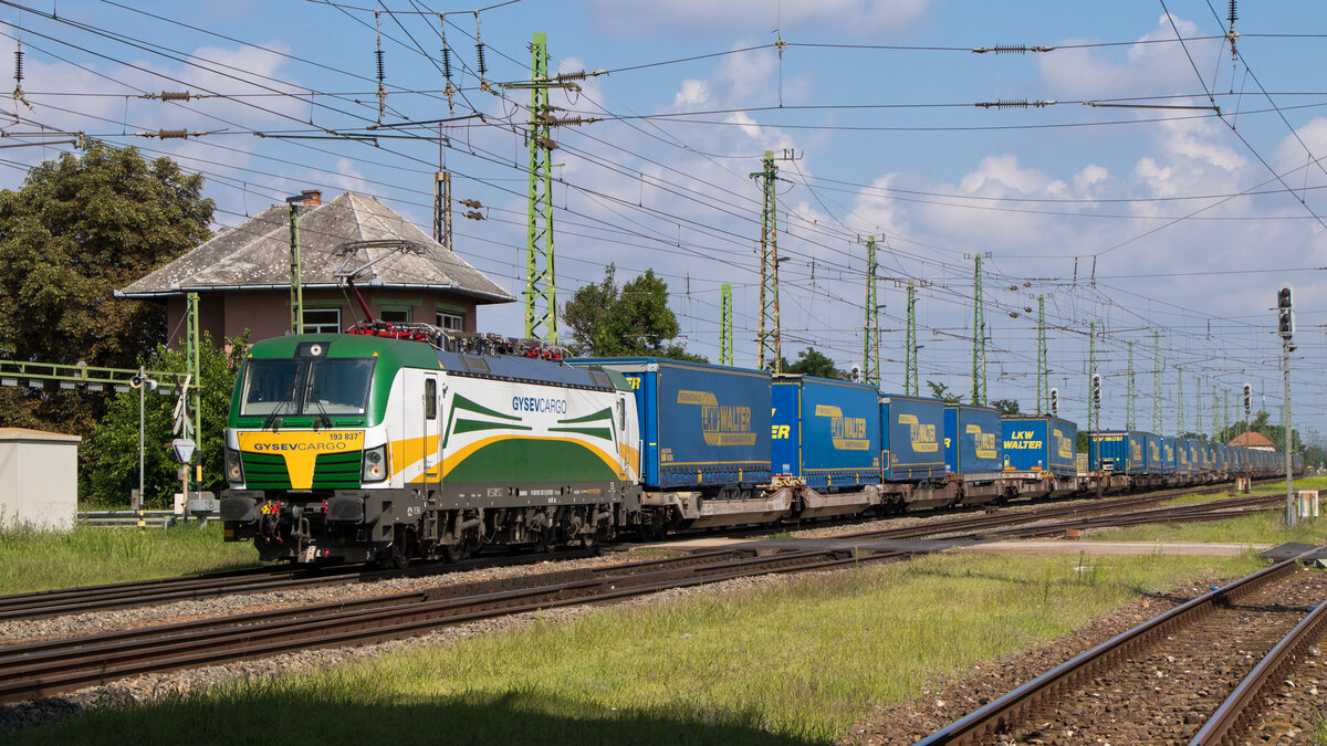 TX Logistik AG, Troisdorf [D] mit der Smartron "192 010" "BLAUES WUNDER" [NVR-Nummer: 91 80 6192 010-7 D-NRAIL] und Taschenwagenzug am 02.06.21 Durchfahrt Bf. Golm (Potsdam).