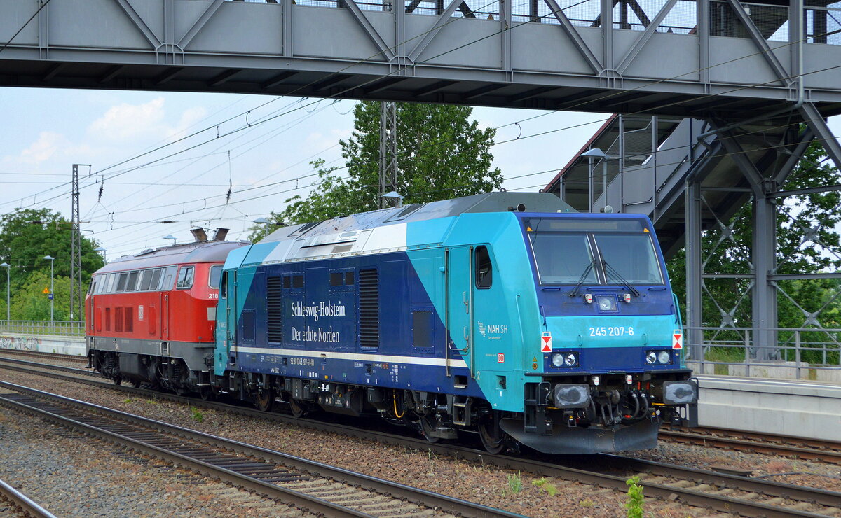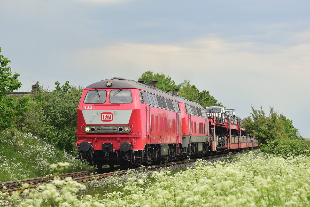 218 319-2 zieht mit 218 390-3 ihren AUtozug durch Keitum nach Westerland. Keitum 03.06.2021
