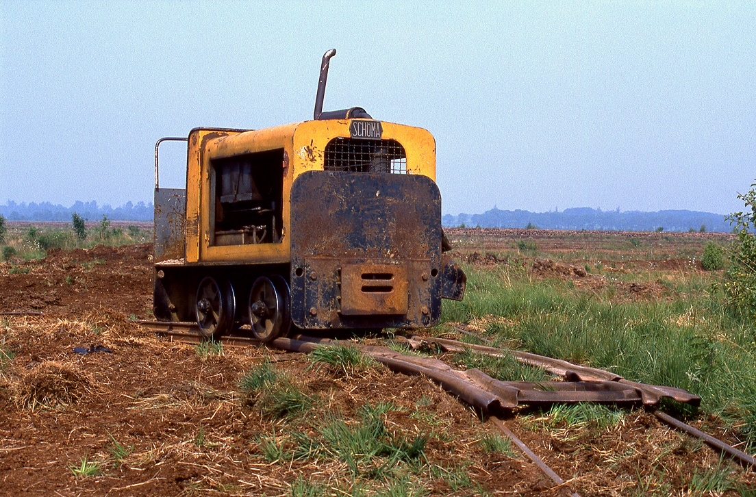 Die Bahn zu den Feldern der Neuland-Gewinnung zwischen Cuxhaven Sahlenburg und Spieka hatte ihren "Betriebsmittelpunkt" in Arensch. Aufnahme dort vom 25.05.1989. 