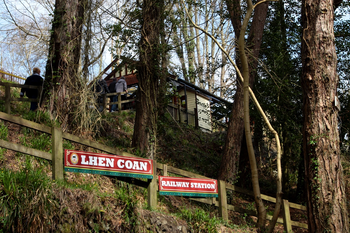 Der Zugang zur Station Lhen Coan der GGR am 28.04.2018. Diese Station ist Ausgangspunkt der Groudle Glen Railway, einer touristischen Bahn mit 2-Fuß Spurweite (610mm). Errichtet wurde die nur 900m lange Bahn zur Verbindung des Groudle Glen mit dem Zoo am Sea Lion Rock an der Steilküste. Eröffnung war 1896 und die Einstellung erfolgte 1962, nachdem schon in den beiden Weltkriegen der Betrieb ruhte. Ab 1982 erfolgte der Wiederaufbau und am 23.05.1986 konnte diese Strecke offiziell eröffnet werden.