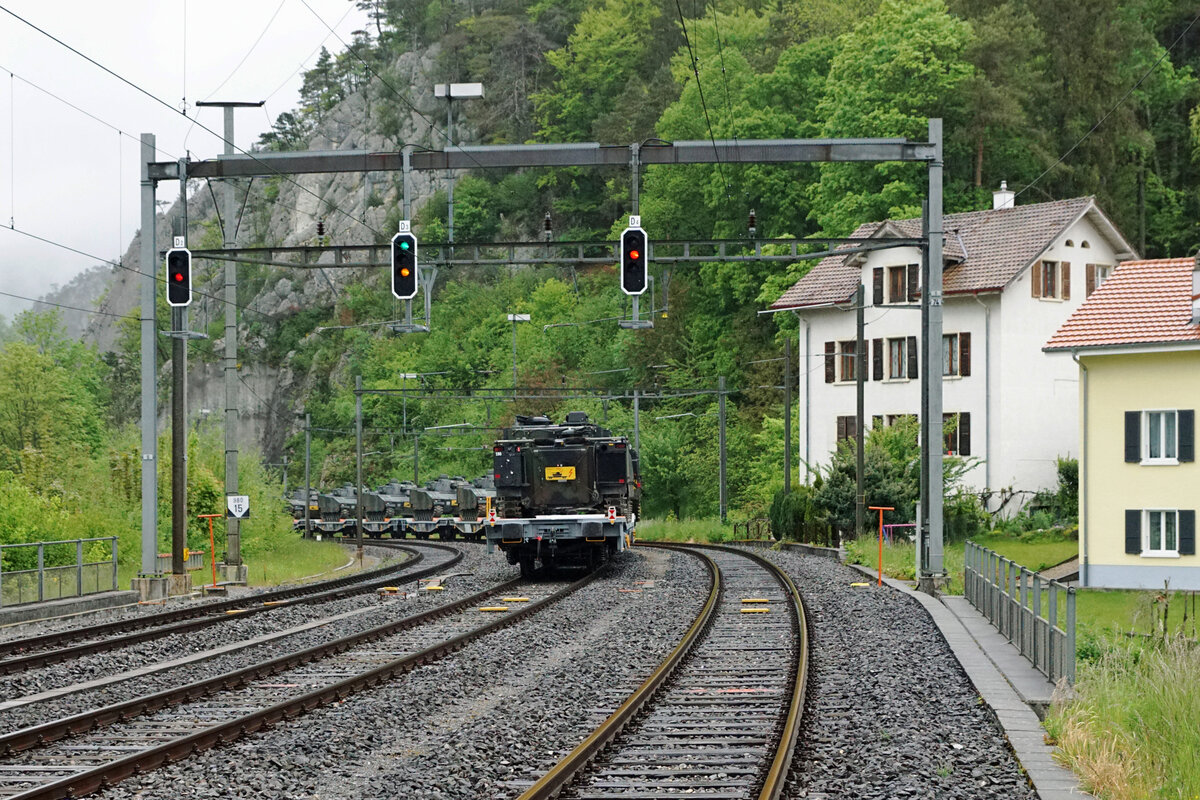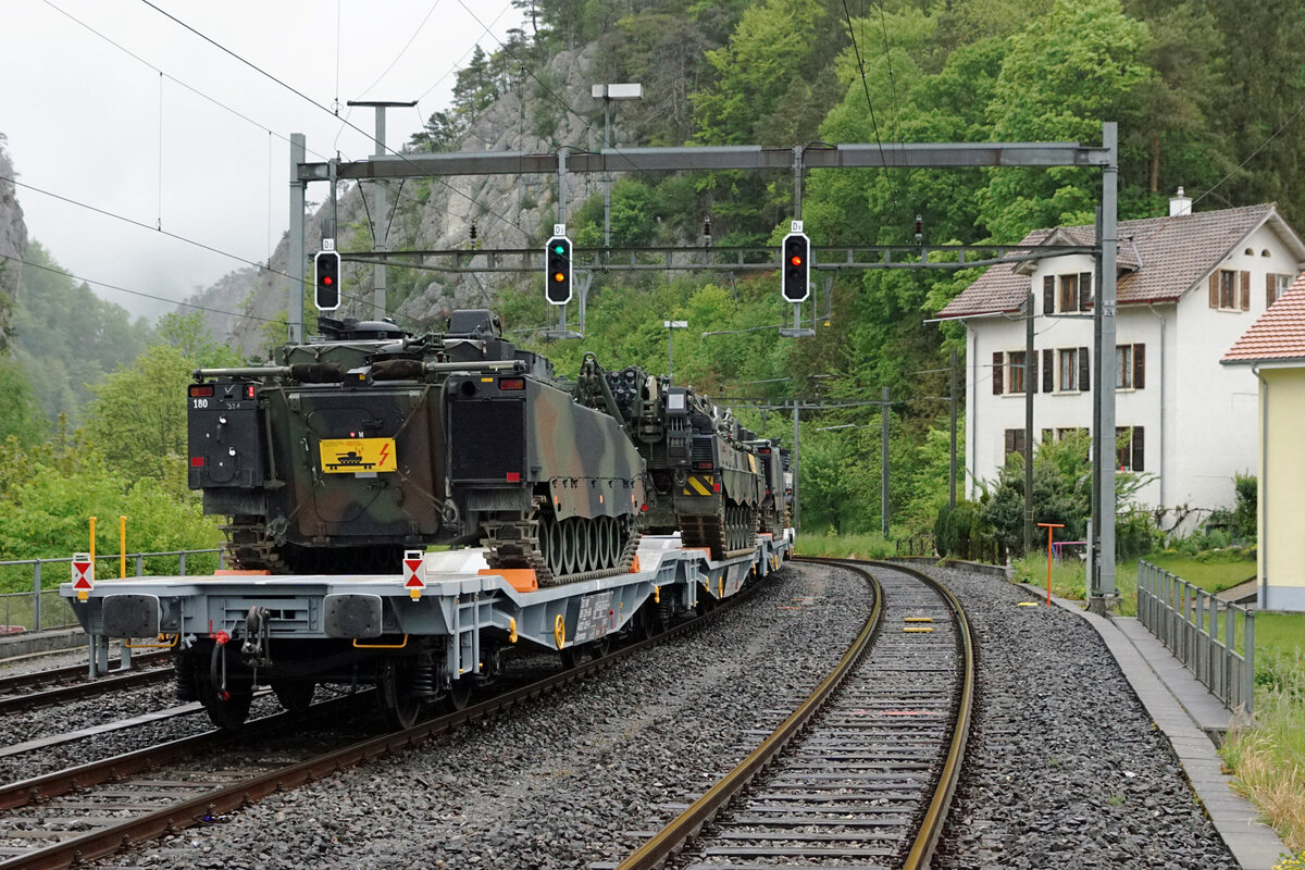 Die Re 420 265-1 und Re 420 319-6 brachten am 27. Mai 2021 ein Militärzug von Biel zum Waffenplatz Bure-Kaserne. Impressionen von Moutier. Foto: Walter Ruetsch