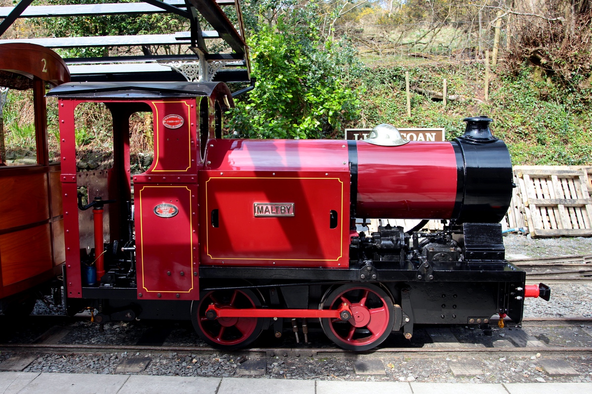 Mit der Diesellok MALTBY wird unser Zug fahren, da die geplante Dampflok ANNIE nicht einsatzbereit war. Hier wartet sie in der Station Lhen Coan auf die Zeit zur Abfahrt am 28.04.2018