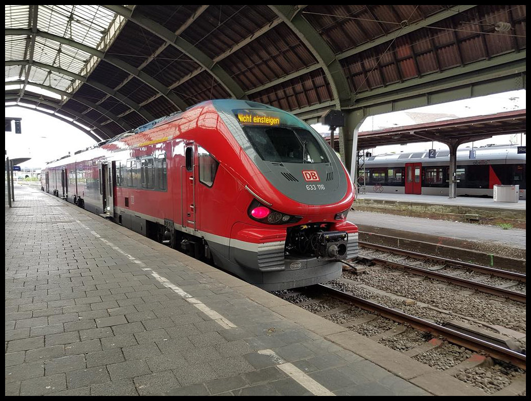 628 605 steht im Bahnhof Dagebüll Mole und nimmt Fahrgäste von den Inseln auf. Gut gefüllt ging es dann wieder nach Niebüll. Dagebüll 04.06.2021