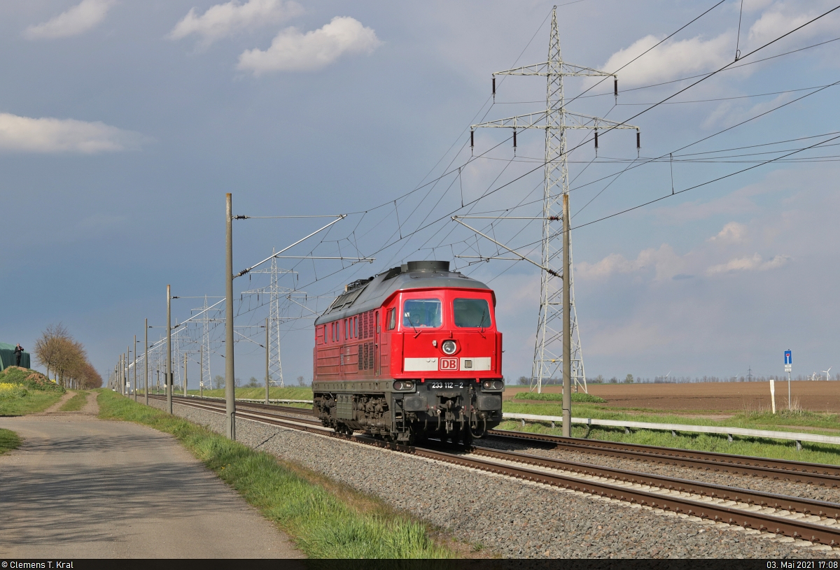 [Reupload] 233 112-2 (232 112-3 | 132 112-4) passiert als Tfzf die Blockstelle (Bk) Braschwitz Richtung Halle (Saale). Viele Grüße zurück an den Tf! 🧰 DB Cargo 🚩 Bahnstrecke Magdeburg–Leipzig (KBS 340) 🕓 3.5.2021 | 17:08 Uhr