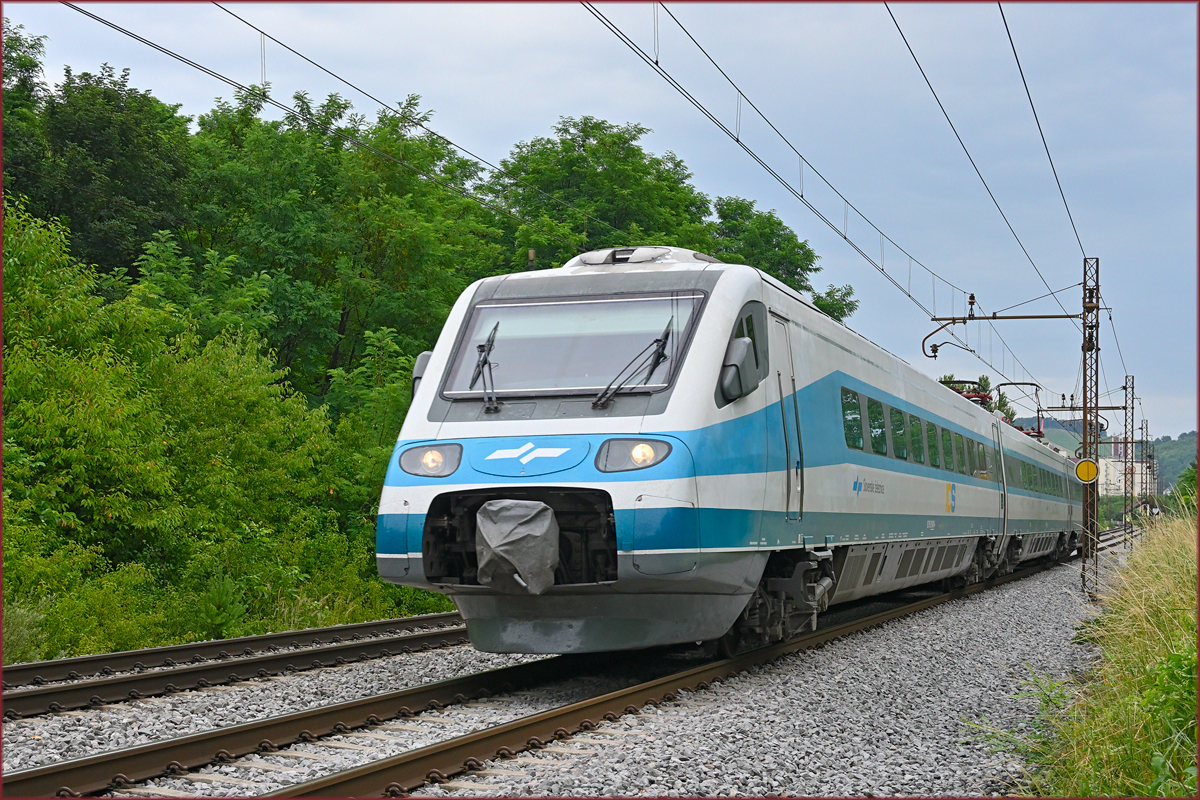 350 013-9 läuft mit einem Expresszug in Zábřeh na Moravě ein. 26.06.2021 11:27 Uhr.
