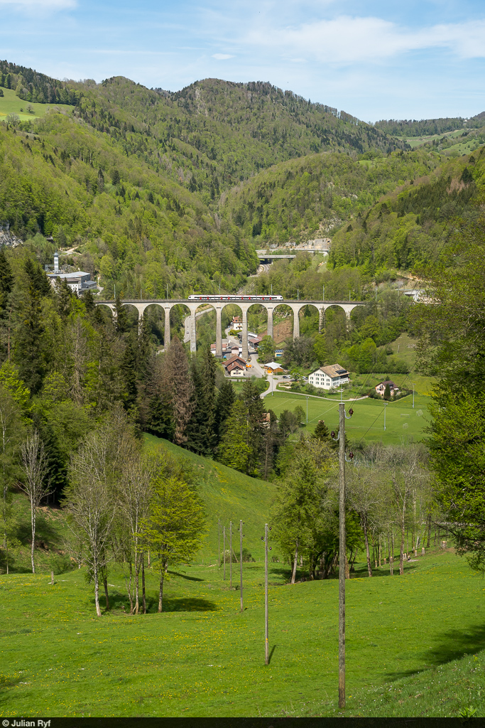 BLS RABe 528 / Leermaterialzug Frutigen - Neuchâtel / Saaneviadukt Gümmenen, 9. Mai 2021<br>