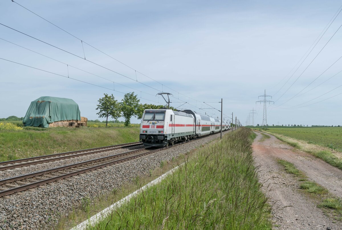 101 007-3 als IC am 18.05.2021 bei Friedland in Richtung Göttingen unterwegs.