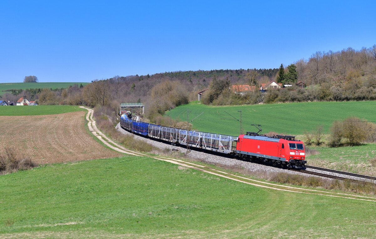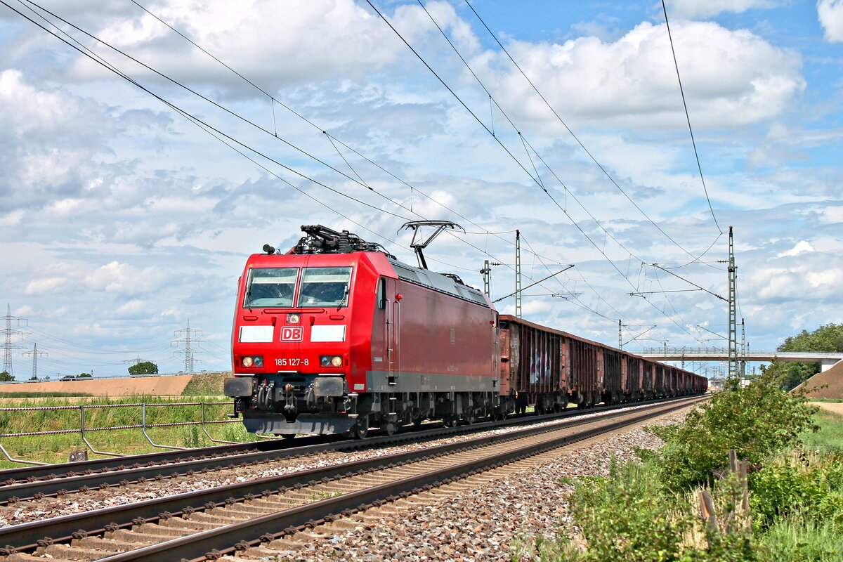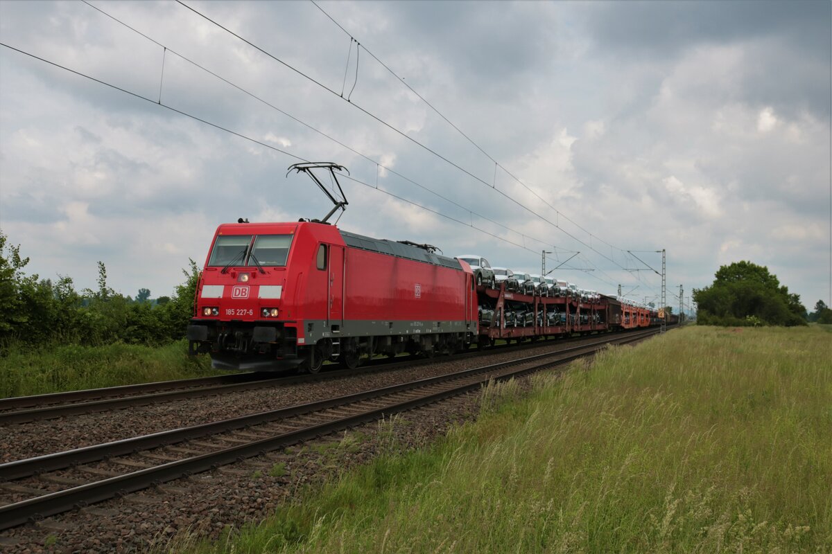 DB Cargo Bombardier Traxx 185 227-6 mit Mischer in Altheim bei Dieburg am 05.06.21