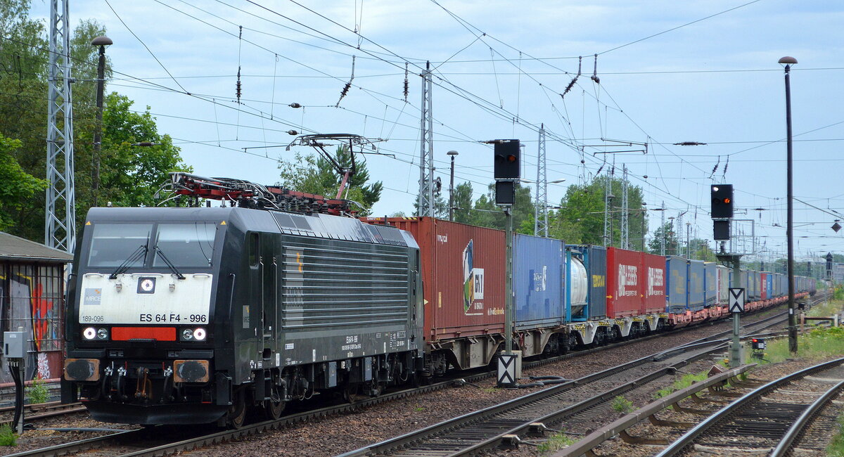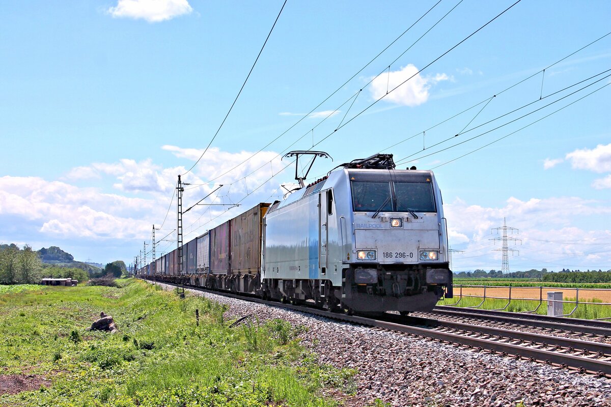 Rpool/LINEAS 186 296-0 mit dem DGS 40040 (Milano Smistamento - Zeebrugge Vorming) am Mittag des 28.06.2020 zwischen Schliengen udn Auggen im Rheintal.