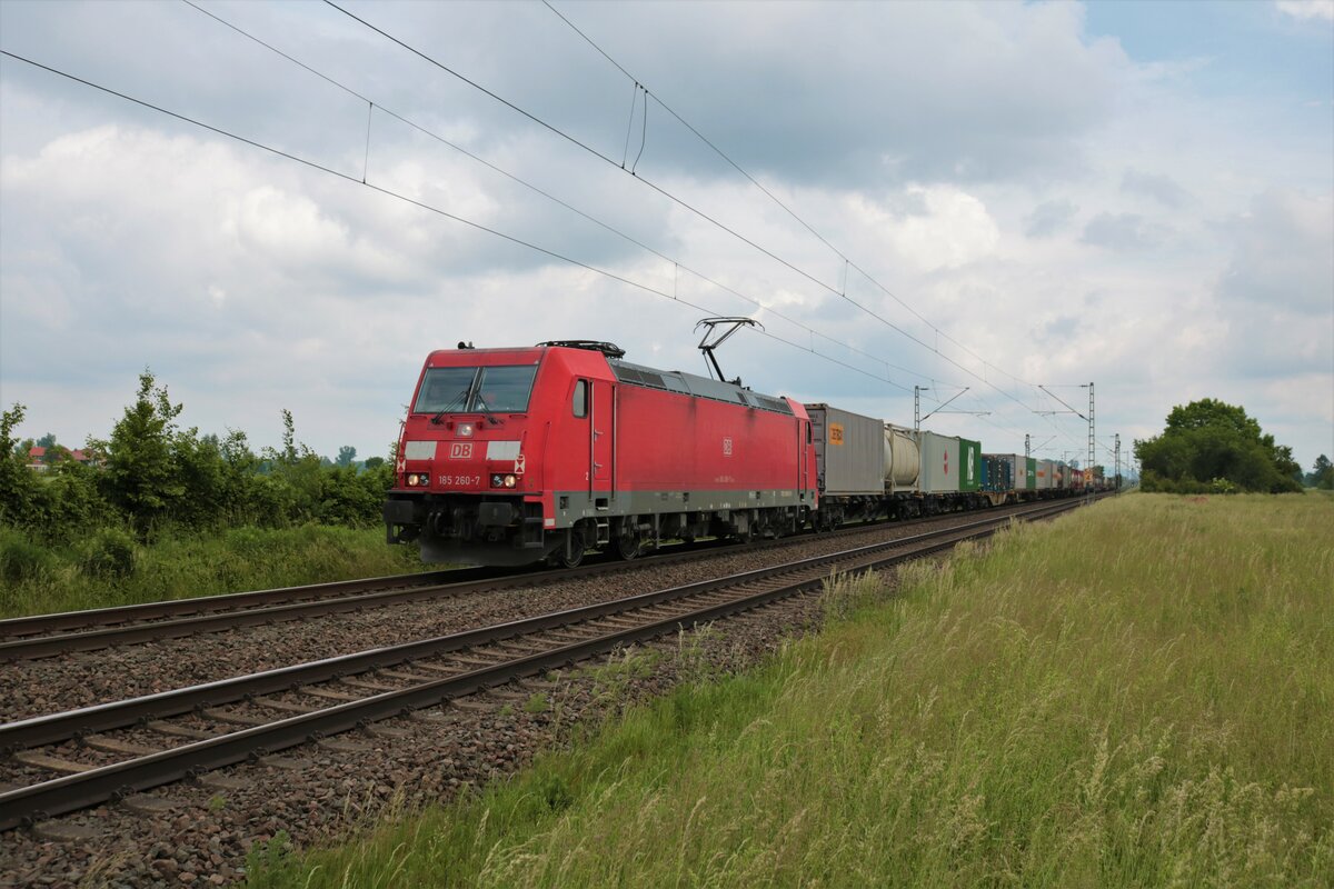 DB Cargo Bombardier Traxx 185 260- mit Mischer in Altheim bei Dieburg am 05.06.21
