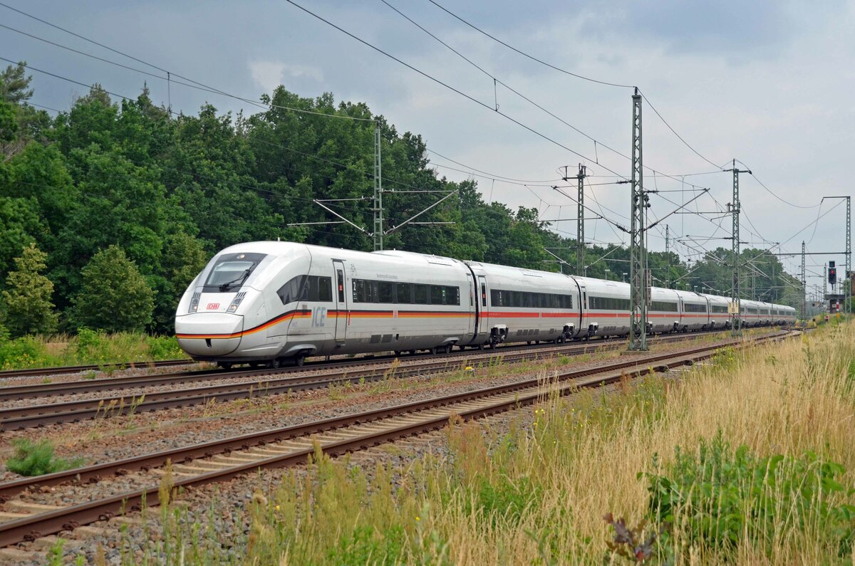 Der ICE 4 "Bundesrepublik Deutschland" war am 02.07.21 als ICE 599 von Berlin nach München. Hier passiert er Radis in Richtung Leipzig.