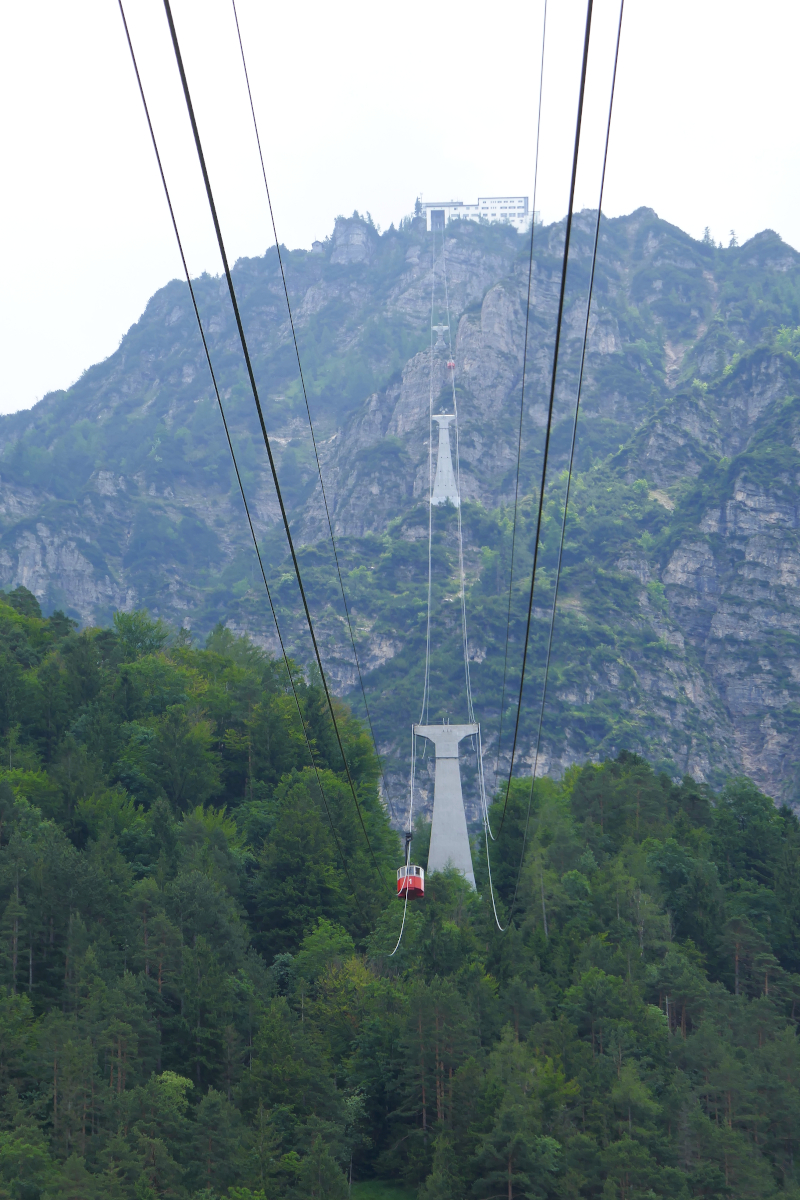 Deutschlands älteste Großkabinenseilbahn ist die Seilbahn von Bad Reichenhall auf den Prdeigtstuhl. Sie wurde am 1. Juli 1928 eröffnet und ist noch (weitgehend) im Original erhalten, weshalb sie seit 2006 unter Denkmalschutz steht. Sie überwindet eine Höhendifferenz von 1150m und legt dabei eine Strecke von 2500m zurück. Bad Reichenhall, 2.Juli 2021