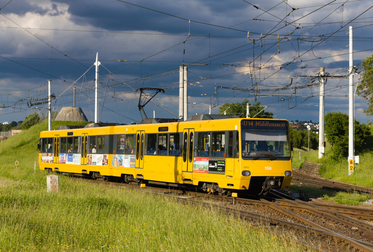 DT 8.9 als U4 Heslach-Mühlhausen am 12.06.2021 kurz nach Verlassen der Haltestelle Mineralbäder.