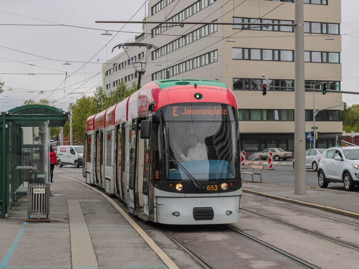 In der Nacht zum 31.03.2021 in Erfurt angekommen und nach zahlreichen Tests und einigen Problemen seit 01.07.2021 im regulären Betrieb auf der Linie 2 unterwegs - Erfurts 1. Tramlink EVAG 801. Am 09.07.2021 steht er hier an der Endhaltestelle P+R Messe. Der Tramlink verkehrt als Linie 2 zum Wiesenhügel und verbindet u.a. die beiden Standorte BUGA-Standorte mit dem Zentrum bzw. Hauptbahnhof.