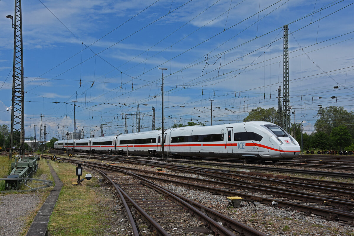 ICE 4 5812 023-0 fährt beim badischen Bahnhof ein. Die Aufnahme stammt vom 04.06.2021.