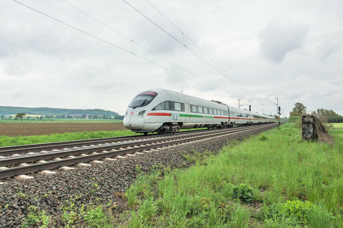ICE 411 511-9  Hansestadt Wismar  ist am 18.05.2021 als Umleiter bei Friedland in Richtung Kassel unterwegs.