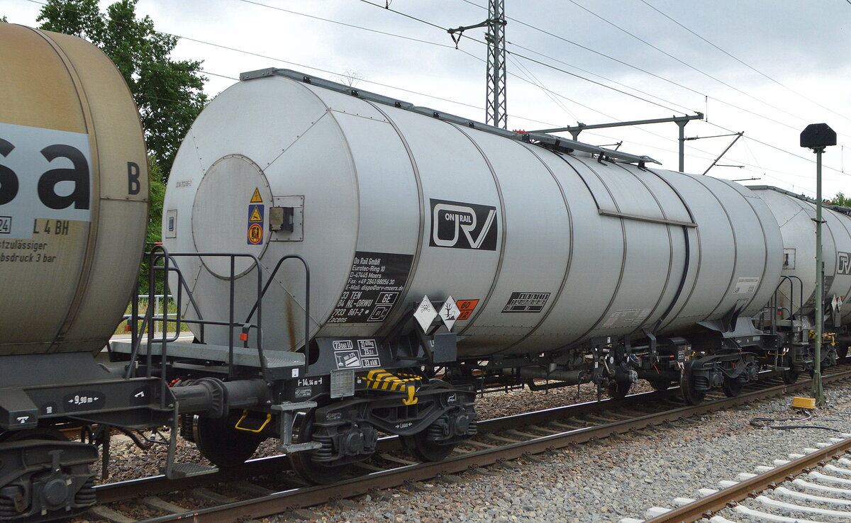 Kesselwagen vom Einsteller On Rail GmbH mit niederländischer Registrierung mit der Nr. 33 TEN 84 NL-ORWU 7933 861-2 Zacens (GE) für das Ladegut lt. UN-Nr.: 60/2312 = Phenol, geschmolzen am 22.06.21 Bf. Golm (Potsdam).