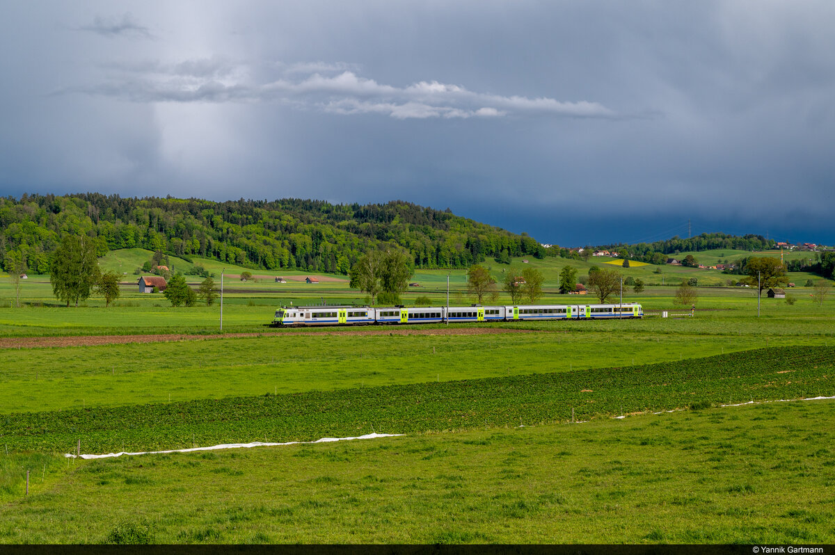 Am 20.05.2021 ist BLS Re 420 502 unterwegs als RE 4076 von Zweisimmen nach Interlaken Ost und konnte hier bei Spiez Moos aufgenommen werden.