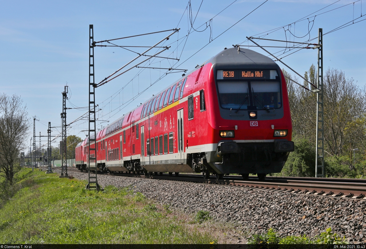 [Reupload] DABpbzfa 762.0 (50 80 80-35 361-0 D-DB) mit Schublok 146 026-0 unterwegs an der Saalebrücke in Schkopau. Aufgenommen vom Saaleradweg (siehe Geodaten). 🧰 Elbe-Saale-Bahn (DB Regio Südost) 🚝 RE 4880 "Saale-Express" (RE18) Jena-Göschwitz–Halle(Saale)Hbf 🚩 Bahnstrecke Halle–Bebra (KBS 580) 🕓 9.5.2021 | 10:43 Uhr