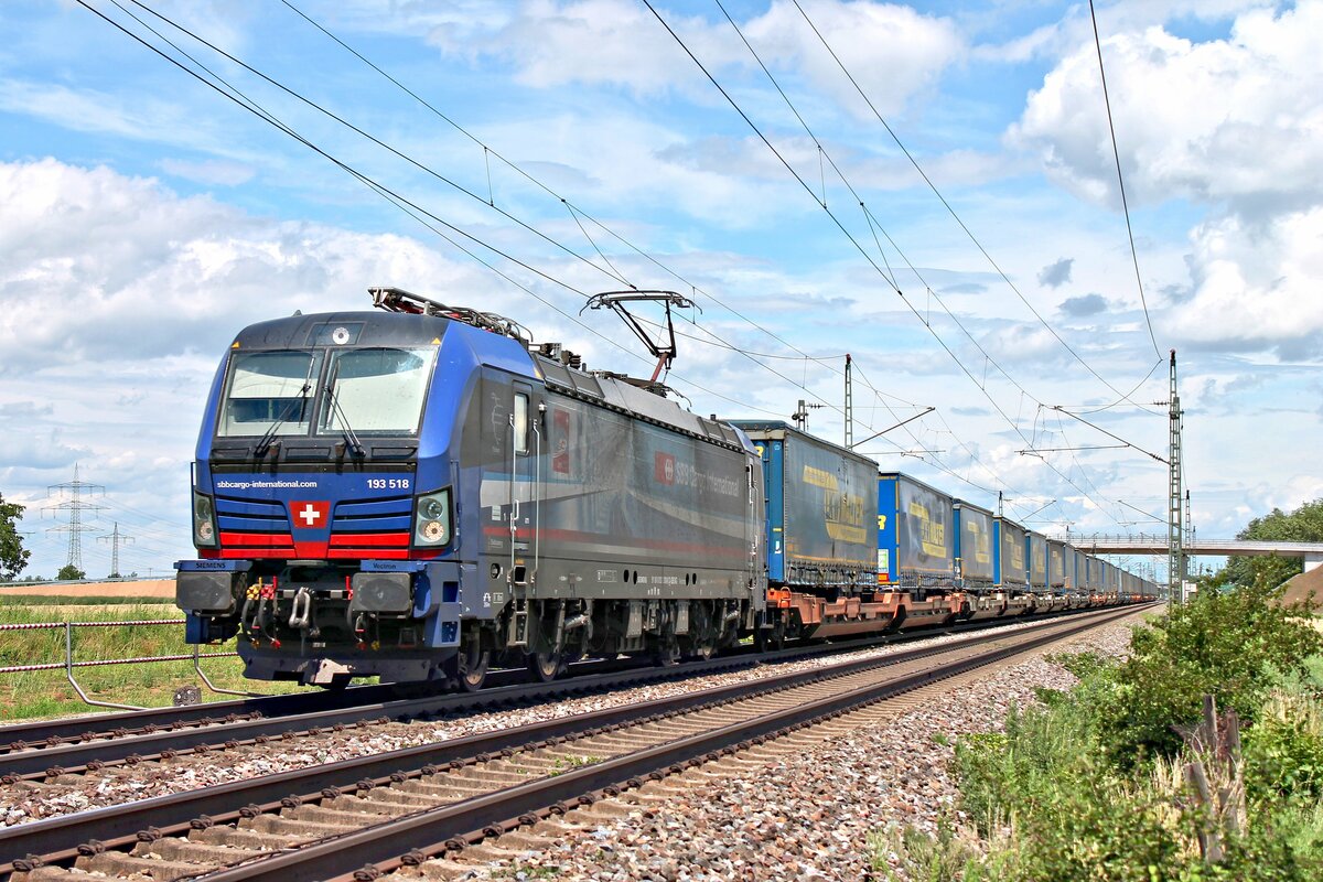 Südleasing/SBBCI 193 525  Rotterdam / Hollandpiercer  mit dem  LKW Walter -KLV DGS 43716 (Novara Boschetto - Lübeck Skandinavienkai) am Mittag des 28.06.2020 zwischen Schliengen und Auggen.