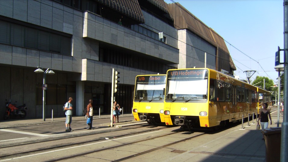 U6 Gerlingen auf der Umleitungsstrecke an der Haltestelle Mittnachtstraße. Am 24.08.2012 fanden Gleisbauarbeiten zwischen Pragsattel, Löwentorbrücke, Eckartshaldenweg und der Türlenstraße statt. Die Linien U6, U7 und U15 nutzten in dieser Zeit die Stammstrecke der U12 über Budapester Platz, Milchhof, Mittnachtstraße, Nordbahnhof und Löwentor zum Pragsattel.