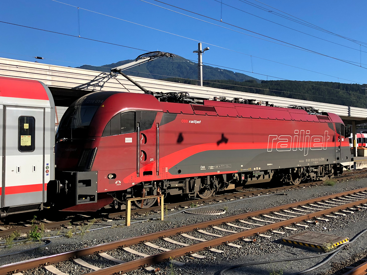 1216 014 bei der Ausfahrt auf Gleis 6 mit dem EC 83 nach Verona P.N. Aufgenommen in Innsbruck Hbf am 13.09.2019