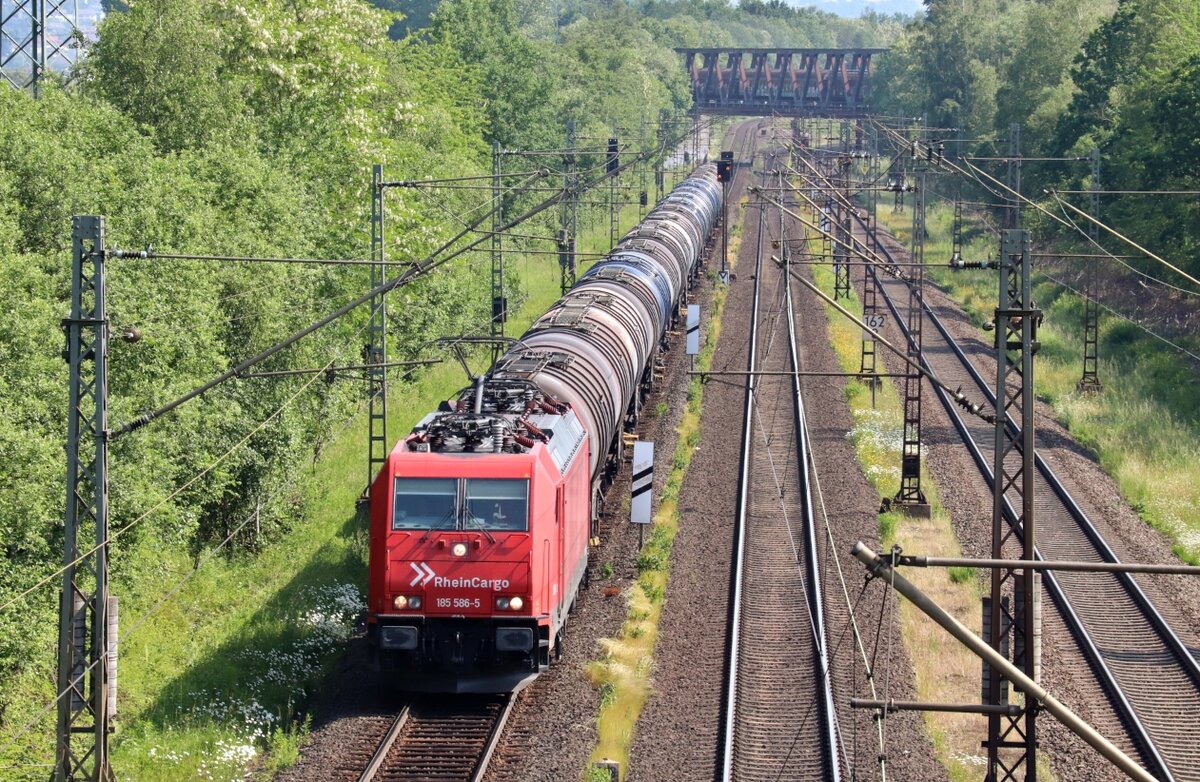 186 243 der Transchem schleppte am 02.07.21 einen Kesselwagenzug durch Radis Richtung Bitterfeld.