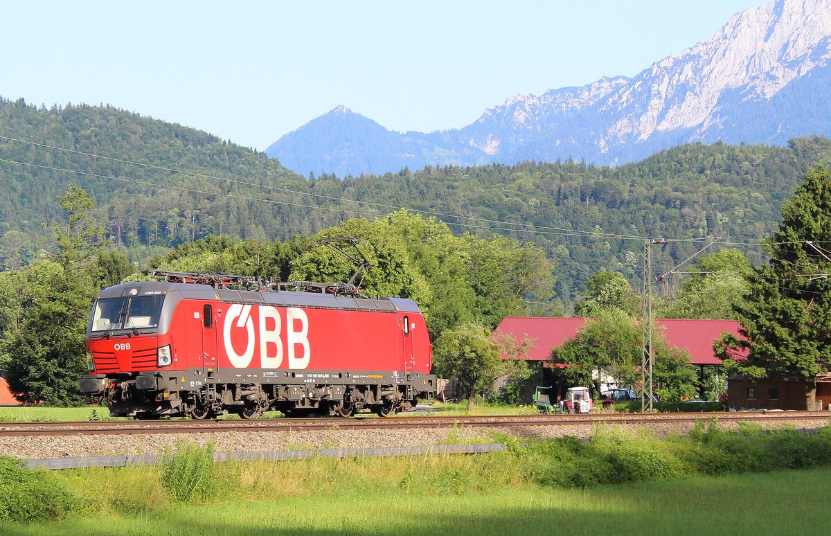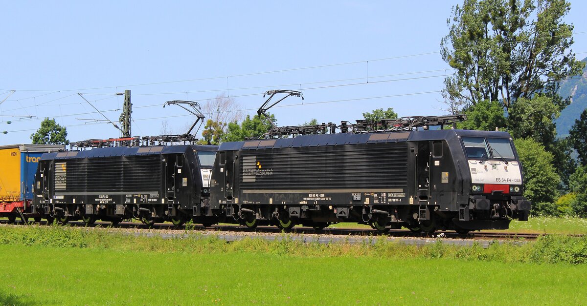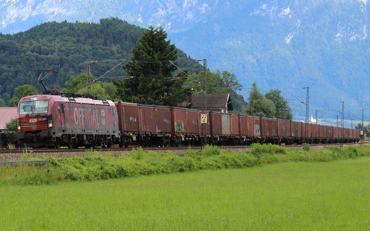 193 555 geht mit Güterzug "Offroad". Aufnahme vom 11.07.2021 bei Oberaudorf/KBS 950