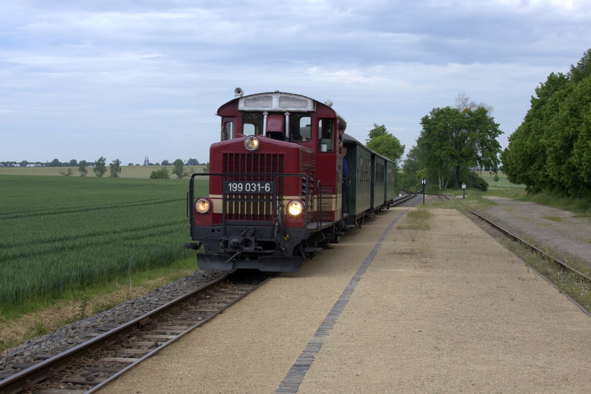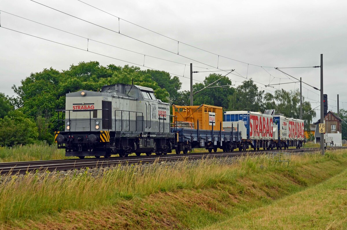 Am 30.06.21 kam 203 014 der Strabag mit einem kurzen Bauzug durch Braschwitz Richtung Halle(S).