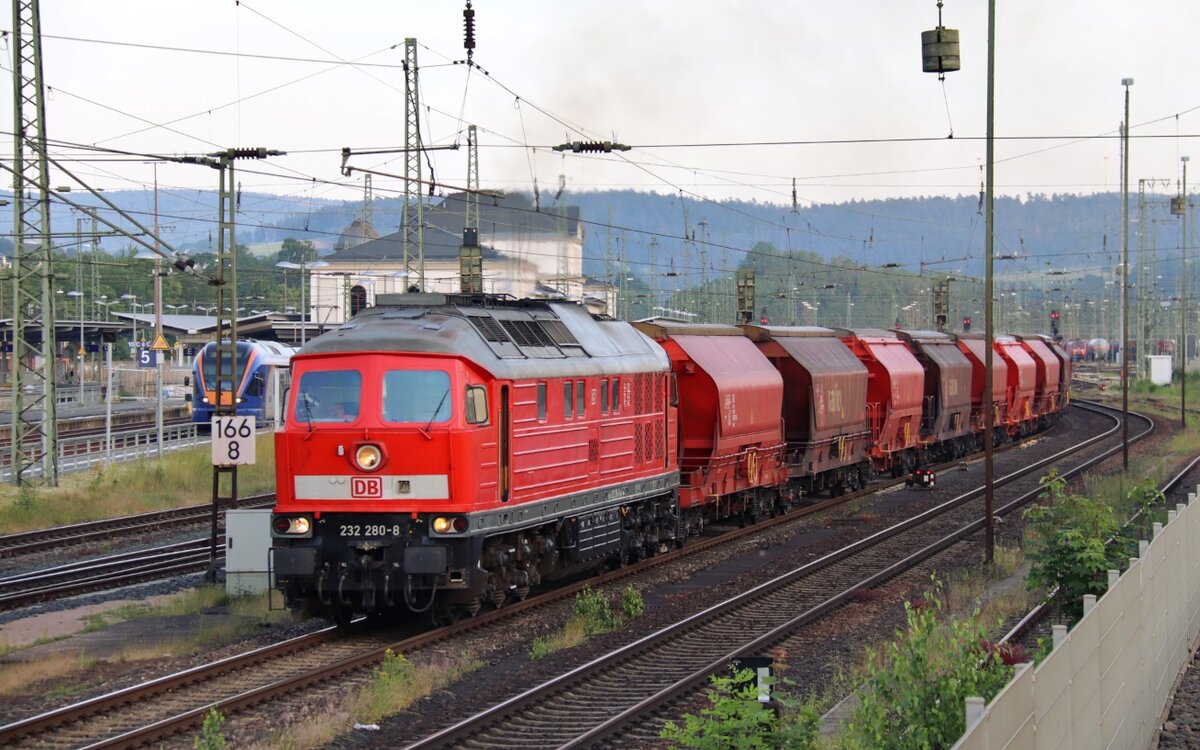 DB 185 392-8 rollt mit einem Güterzug langsam in Würzburg Hbf ein. Aufgenommen außerhalb des Gefahrenbereichs von einem Weg aus direkt neben den Gleisen. 14.07.2021