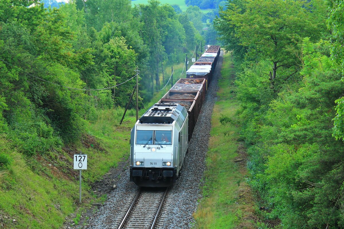 GW Train 654045-3 hält hier am 28.6.2021 um9.19 Uhr als Zug 7103 nach Marienbad im Bahnhof Teplicka.